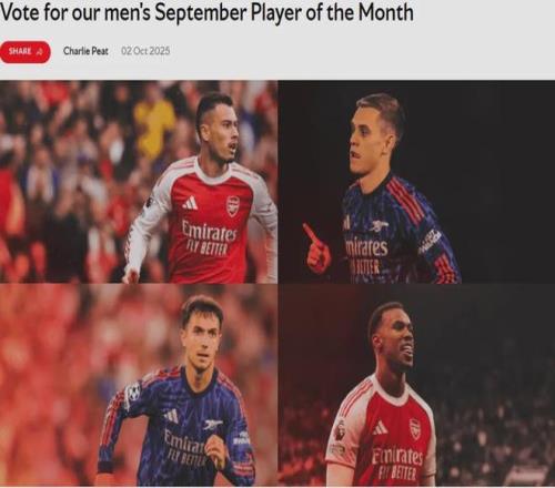 官方:马丁内利、特罗萨德、祖比门迪和加布里埃尔被提名为了阿森纳9月份队内最佳球员候选。