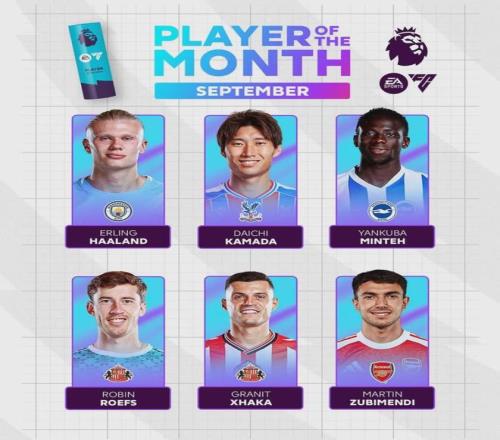 祖比门迪被提名为了英超9月份最佳球员候选。