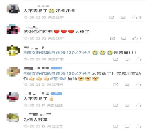 韩聪在赛后采访中坦言,为回归他严格节食减重,每天坚持高强度训练,“作为中国运动员,我们有责任和使命为祖国继续拼搏”。隋文静则笑称控制情绪是新课题:“太久没见这么多观众,兴奋到连站位都记错了,接下来要慢慢适应比赛节奏”。两人的复出获得全网盛赞,“伟大无须多言”“感谢回归”等评论刷屏,相关话题强势登顶微博体育热搜第一。