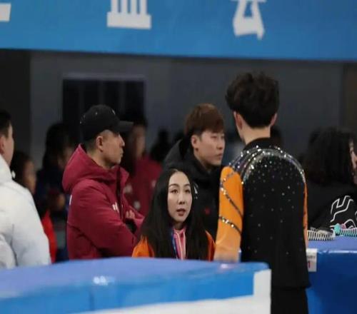 隋文静以辅助教练身份在花滑比赛现场(图源:新京报)