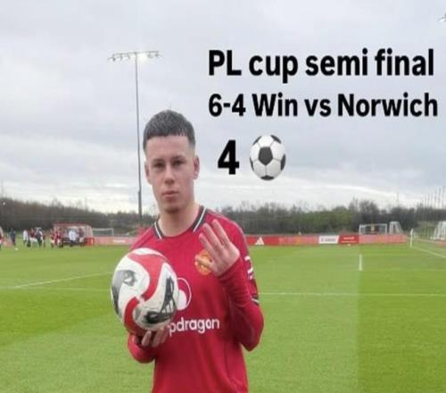 当地时间2月7日,在U16联赛杯半决赛中,曼联U16以6-4战胜诺维奇U16。在本场比赛中,效力于曼联U16的鲁尼之子凯-鲁尼上演大四喜。