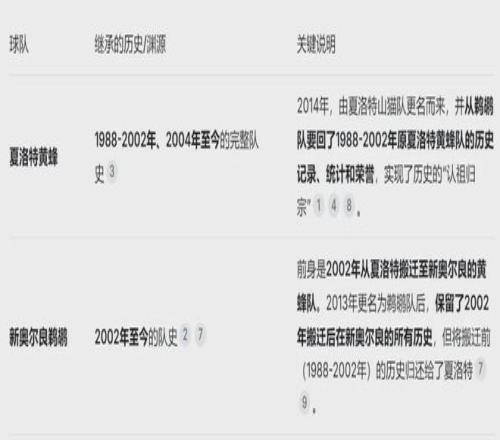 这是黄蜂队史自1999年4月以来,近27年首次取得9连胜。黄蜂的前身是夏洛特山猫,2004年才建队,怎么会有1999年的纪录?看看下面这张图大家就知道了,现在的黄蜂不仅继承了山猫队史,还有1988-2002老夏洛特黄蜂的队史。