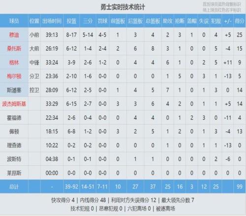 勇士上半场11次助攻8次失误,两队“助攻失误比”都接近1比1。湖人两大核心詹姆斯和里夫斯手感冰凉,詹姆斯8中2得到7+6+4,里夫斯5中1得到3+4+7。上半场最后一攻,斯潘塞迎着詹姆斯压哨跳投打进,库里在场边看嗨了。