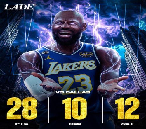 全场比赛,詹姆斯出战35分钟,20投10中,得到28分10篮板12助攻1封盖,一战轰下4大纪录。第一,这是詹姆斯本赛季的第一次三双,也是生涯第123次三双。第二,詹姆斯以41岁45天的年龄砍下三双,超越卡尔·马龙,成为NBA历史上最年老三双球员。第三,詹姆斯上半场送出8次助攻,追平本赛季半场助攻纪录。第四,41岁的詹姆斯已经连续4场助攻上双,超越斯托克顿,成为历史上40岁球员最长连续助攻上双次数。